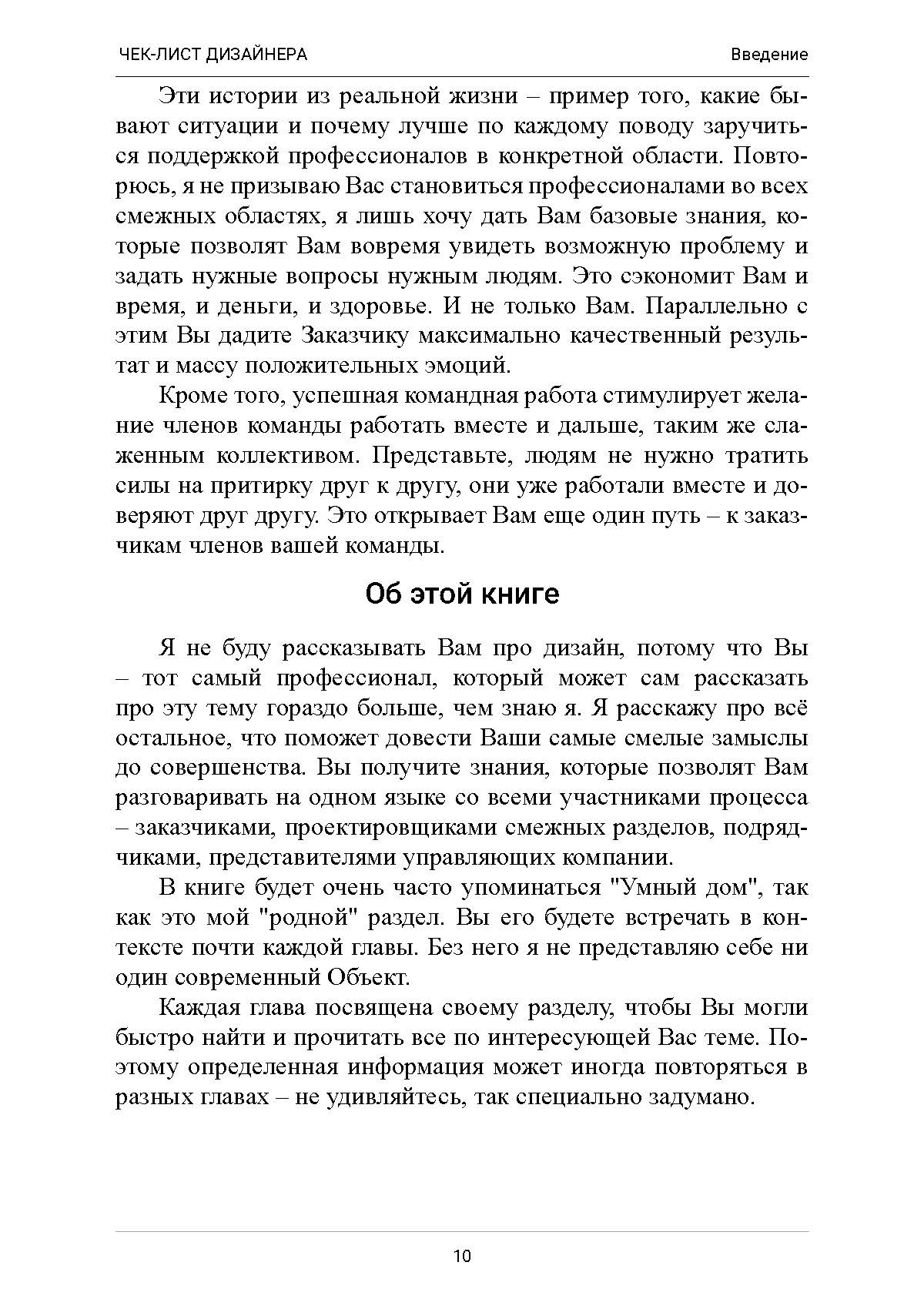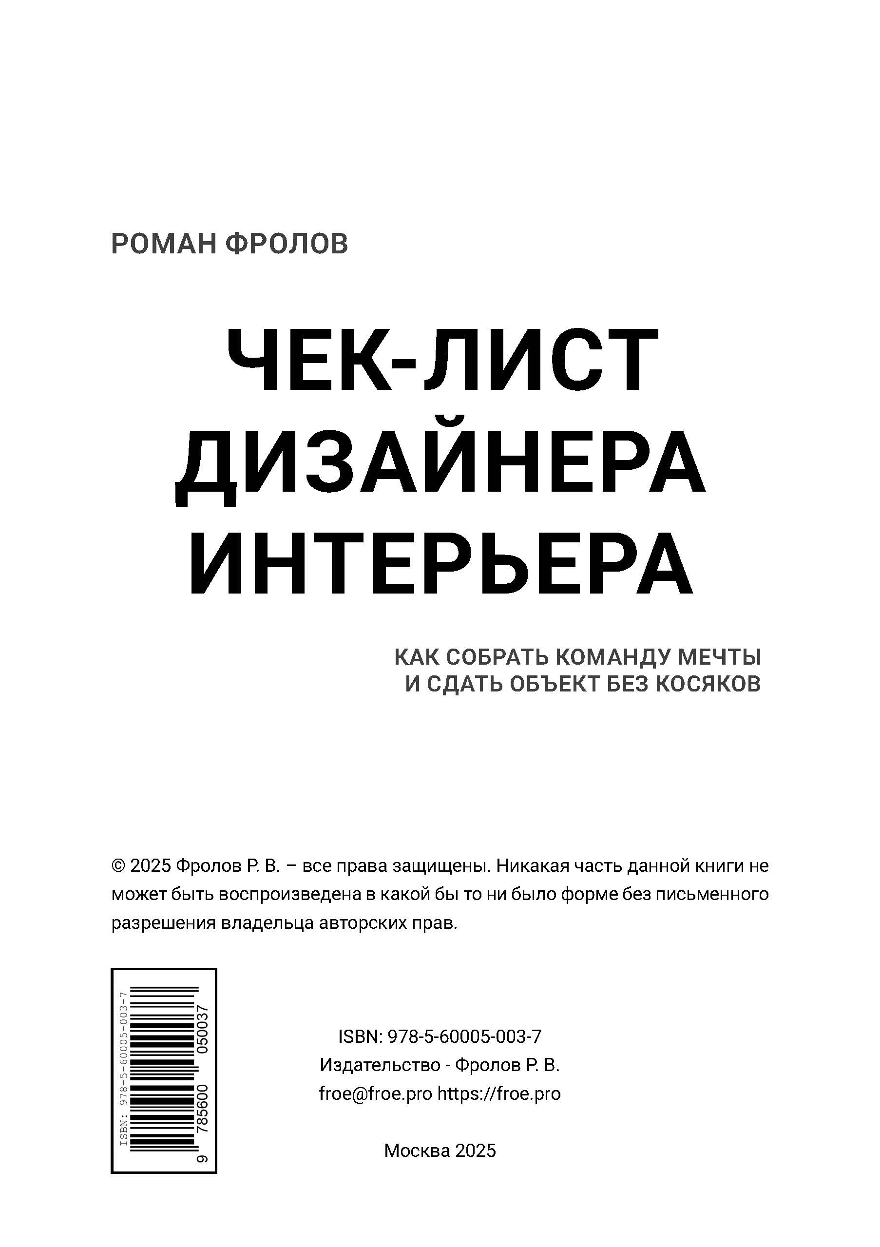 Польза для читателя: После прочтения дизайнер или архитектор получит готовый алгоритм действий для систематизации своей работы, научится видеть «подводные камни» до начала строительства, сможет выстроить доверительные отношения с заказчиком через прозрачность и профессионализм, а главное — создаст себе репутацию надежного исполнителя, который сдает объекты «без косяков».
