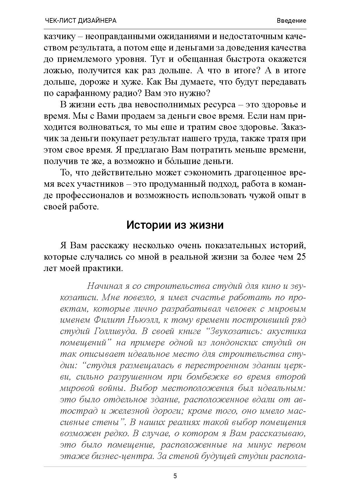 - Сбор и управление «командой мечты». Книга научит не пытаться быть экспертом во всем, а правильно подбирать и координировать узких специалистов (акустиков, инженеров, консультантов). Это снижает риски и повышает общее качество.
